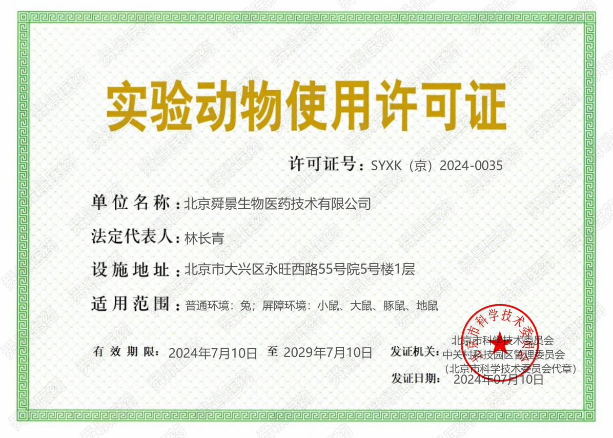 舜景醫(yī)藥實(shí)驗(yàn)動(dòng)物管理中心位于北京市大興區(qū)生物醫(yī)藥基地慶豐西路55號(hào)院5號(hào)樓,占地面積約1100平方米,其中屏障環(huán)境約380平方米、普通環(huán)境120平方米,可開(kāi)展SPF級(jí)大鼠、小鼠、豚鼠、地鼠及普通實(shí)驗(yàn)兔的動(dòng)物實(shí)驗(yàn)研究,設(shè)計(jì)大、小鼠籠位共2300余籠。該動(dòng)物管理中心已搭建了小動(dòng)物手術(shù)平臺(tái)、小動(dòng)物活體成像平臺(tái)、CDX、PDX模型平臺(tái)等多個(gè)技術(shù)服務(wù)平臺(tái),配備了先進(jìn)的動(dòng)物實(shí)驗(yàn)儀器設(shè)備,包括小動(dòng)物活體成像系統(tǒng)、小動(dòng)物麻醉機(jī)、動(dòng)物體視顯微鏡等,可滿足不同學(xué)科高水平的動(dòng)物實(shí)驗(yàn)需求。