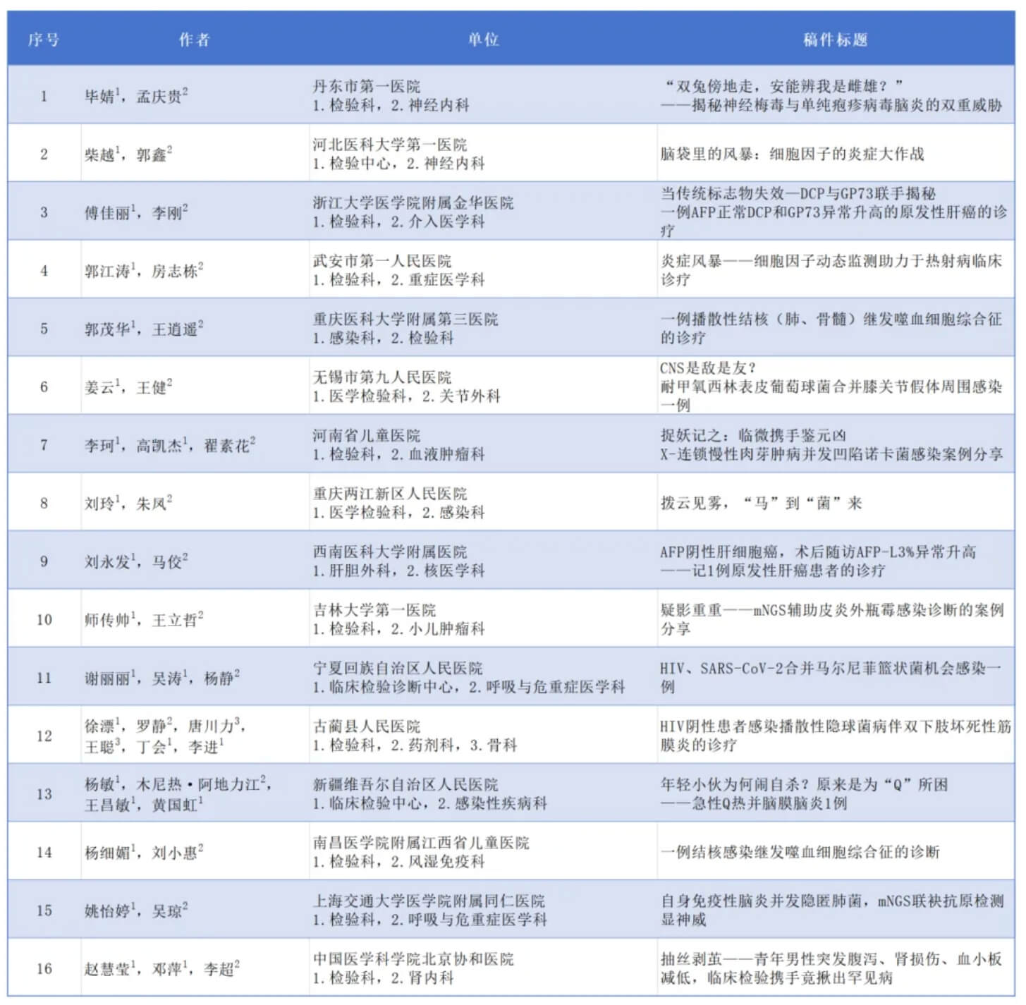 2、檢驗與臨床人員各1名,以PPT的形式進行現(xiàn)場匯報,每組時長10分鐘。專家將根據(jù)選手現(xiàn)場表現(xiàn)+稿件綜合得分進行綜合評比。最終評選出一、二、三等獎。